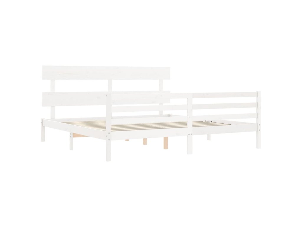 Rám postele s čelem bílý Super King Size masivní dřevo 3195107