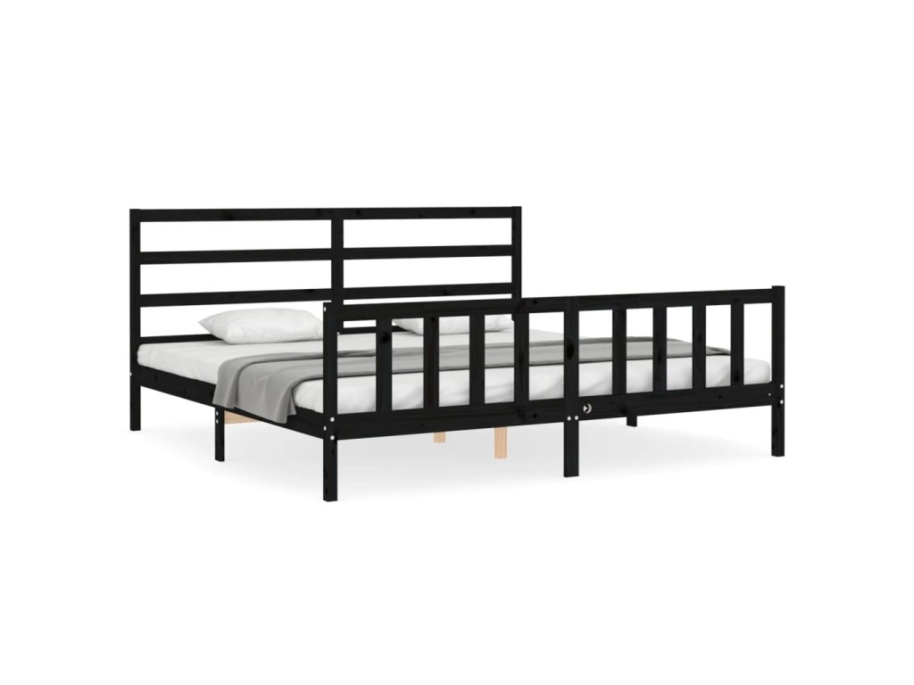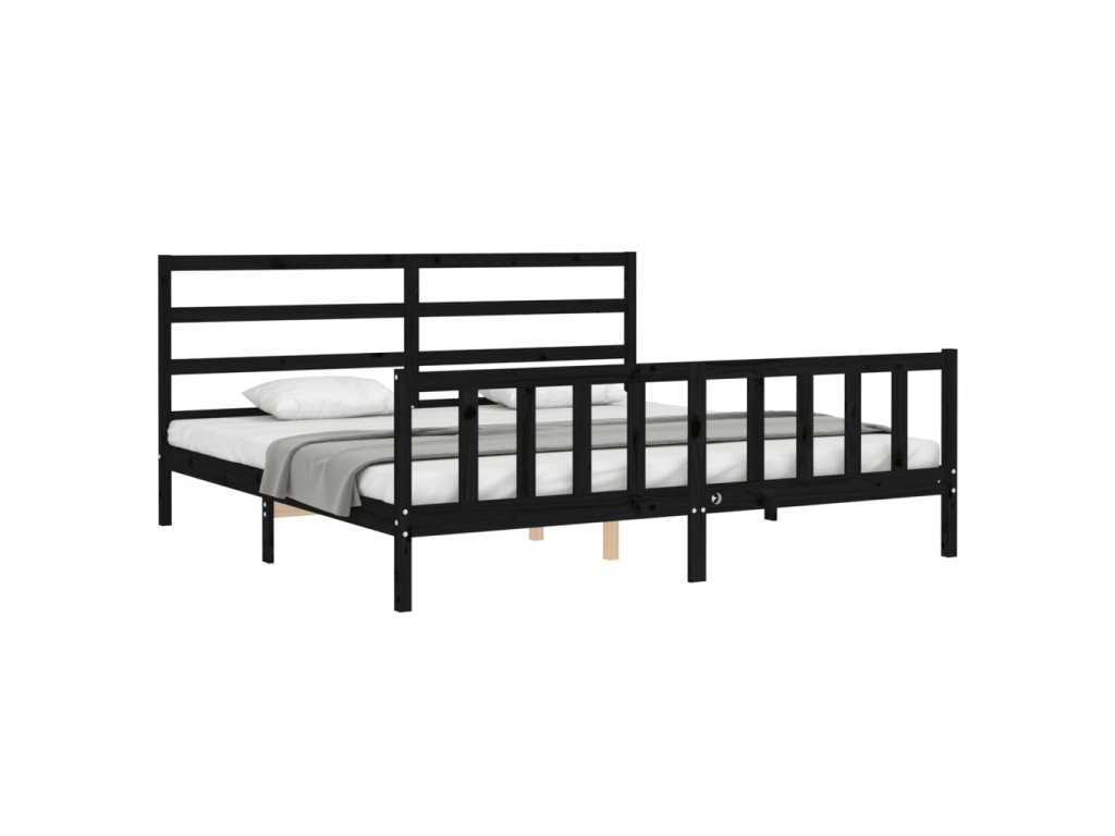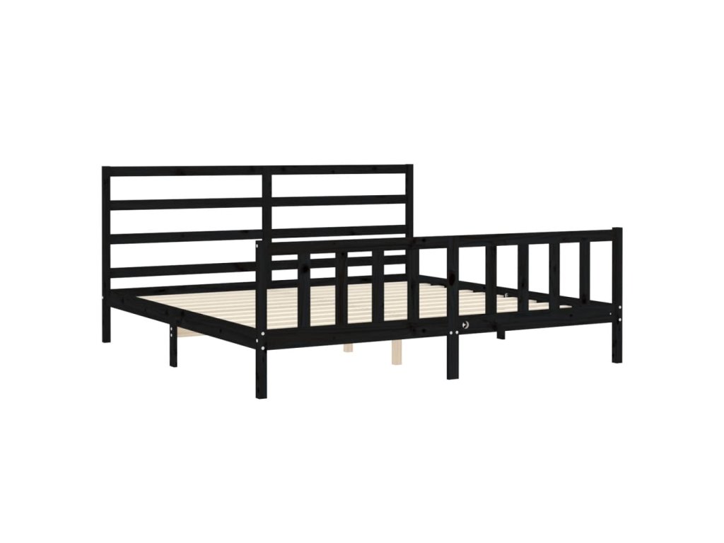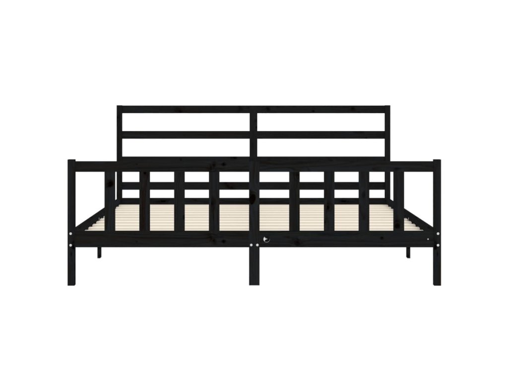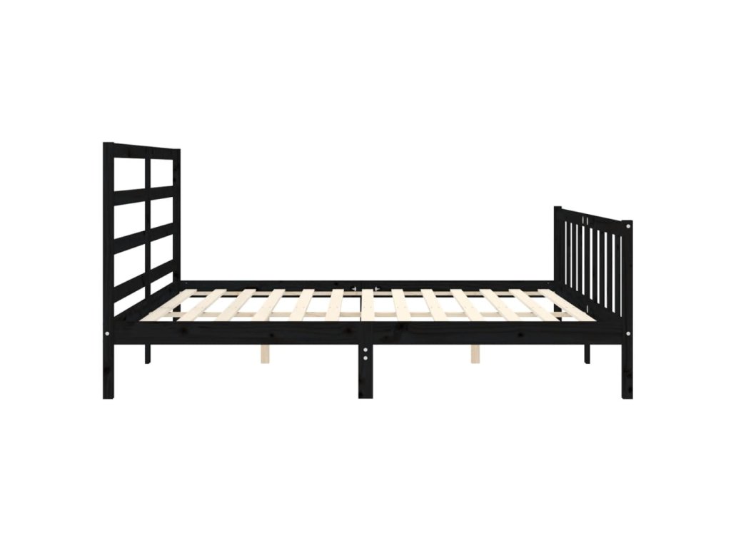 Rám postele s čelem černý 200 x 200 cm masivní dřevo 3191930