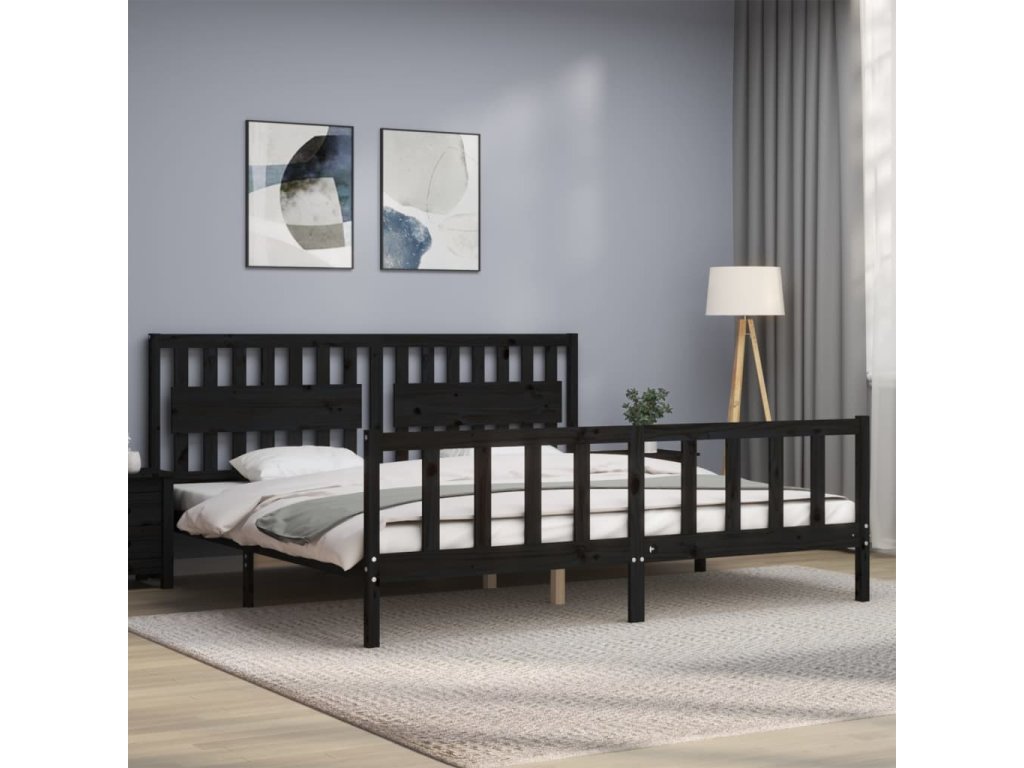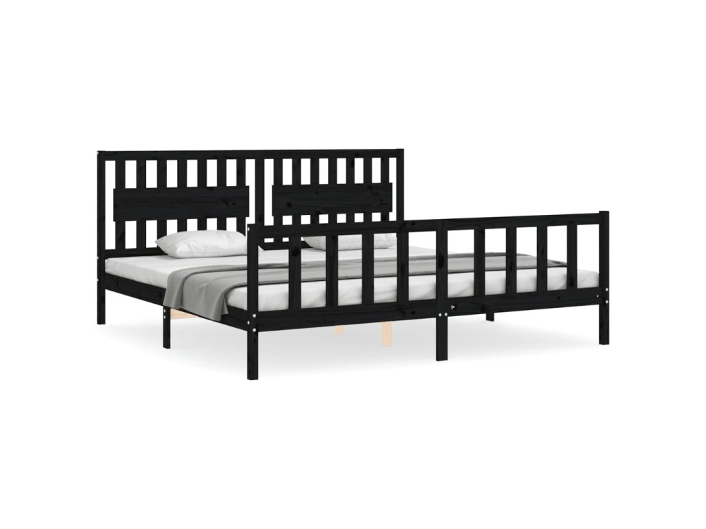 Rám postele s čelem černý 200 x 200 cm masivní dřevo 3192450