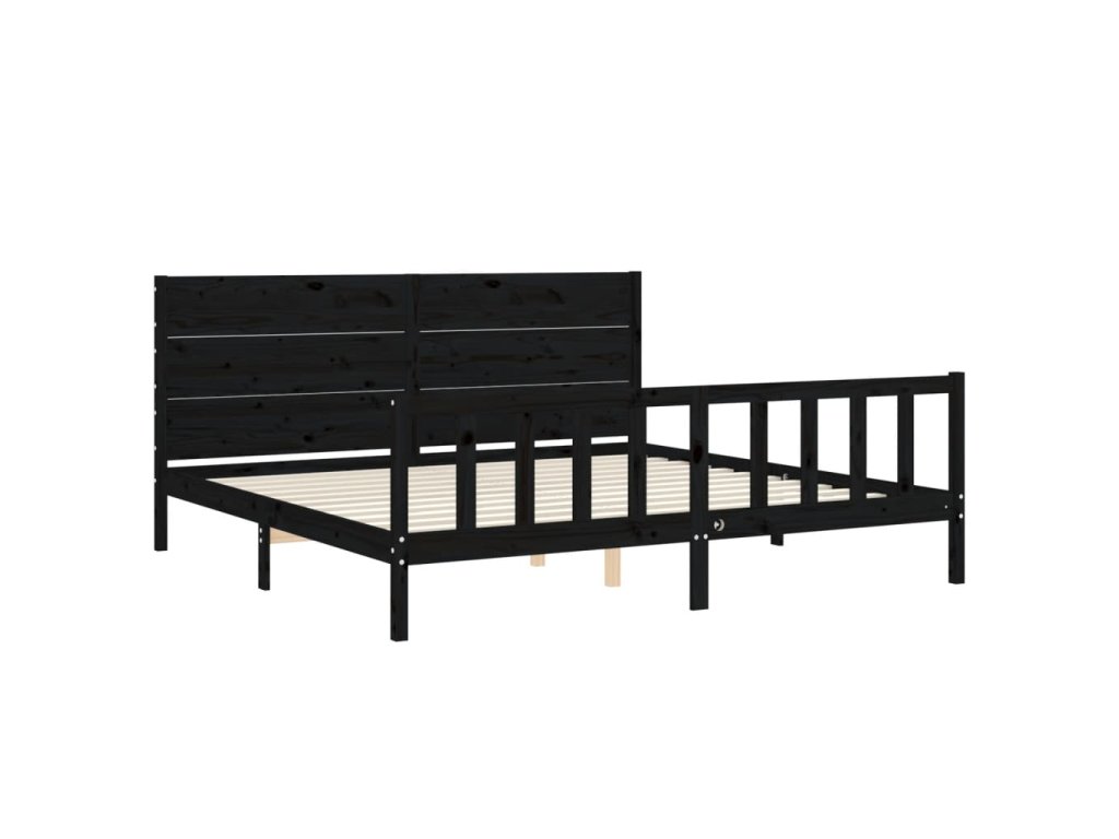 Rám postele s čelem černý 200 x 200 cm masivní dřevo 3192775