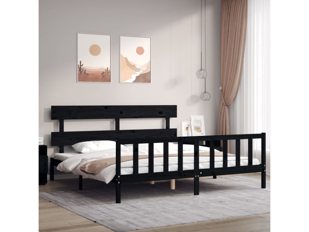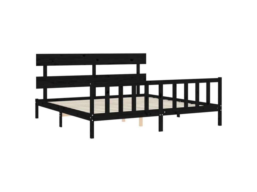 Rám postele s čelem černý 200 x 200 cm masivní dřevo 3193295