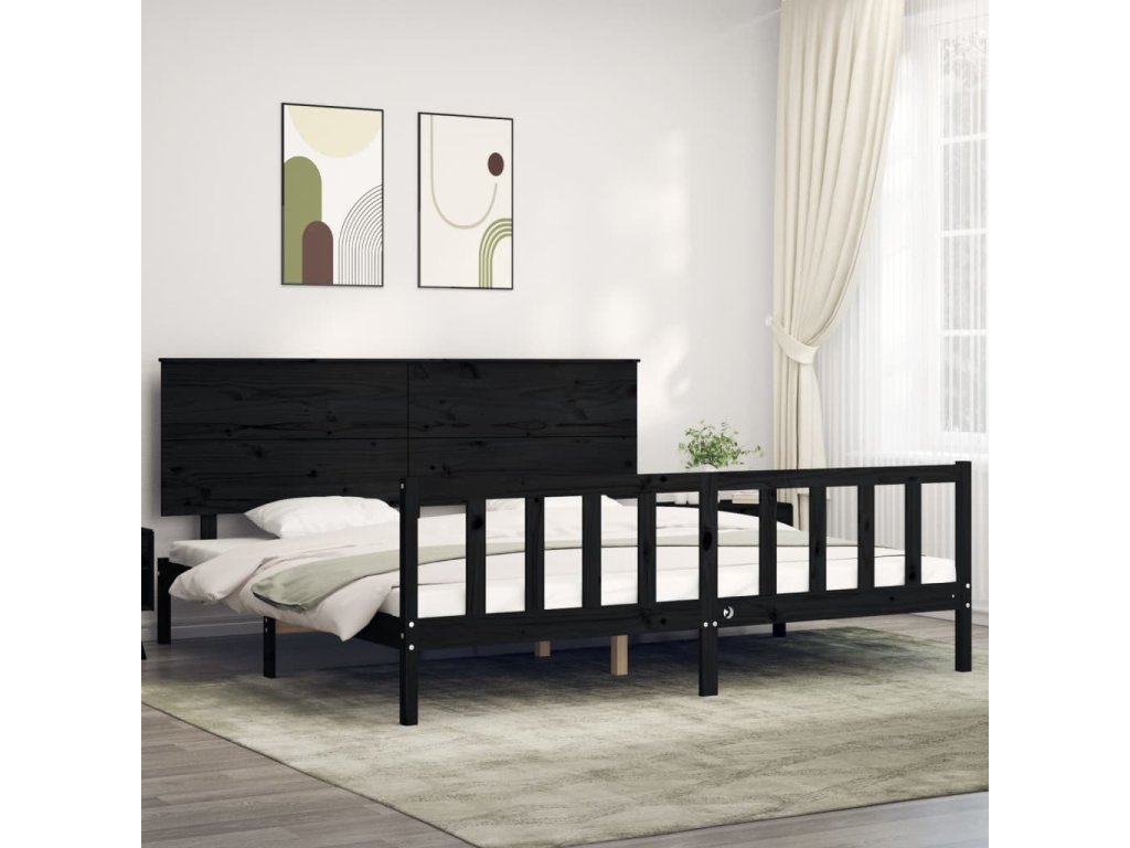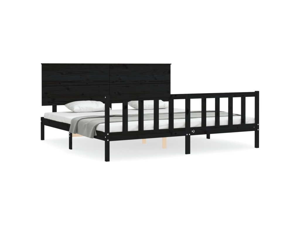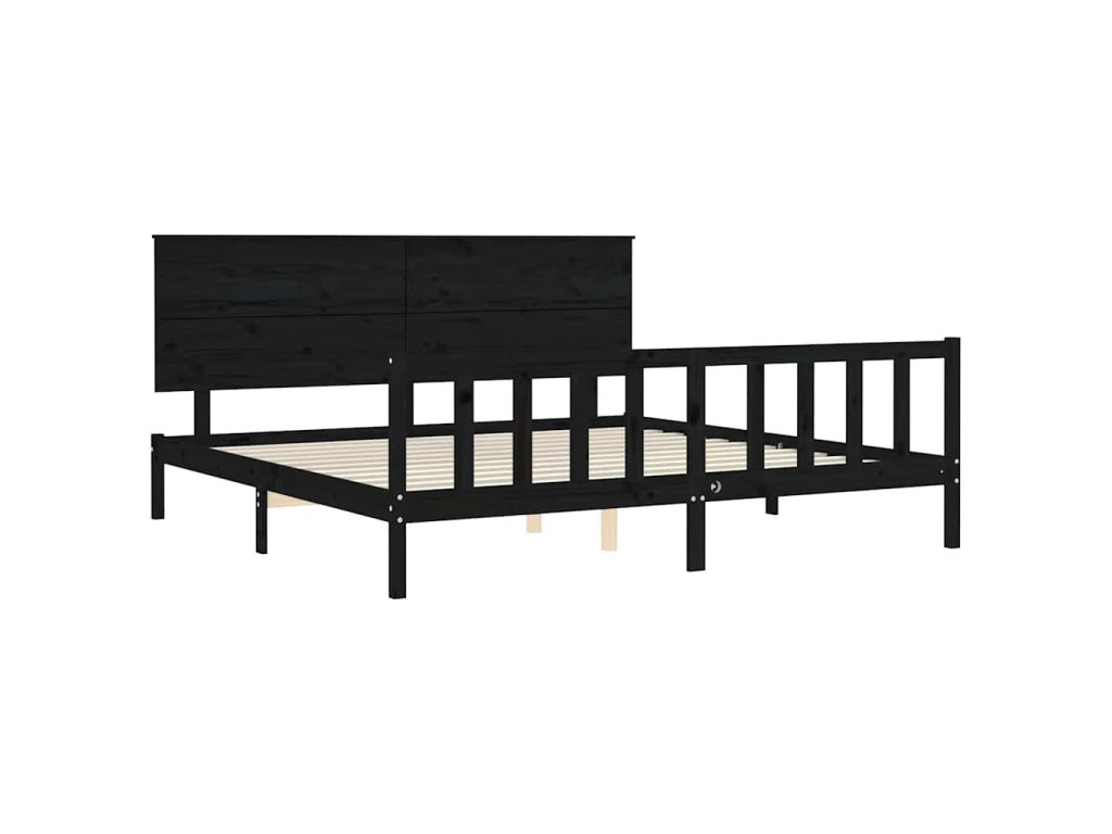 Rám postele s čelem černý 200 x 200 cm masivní dřevo 3193425
