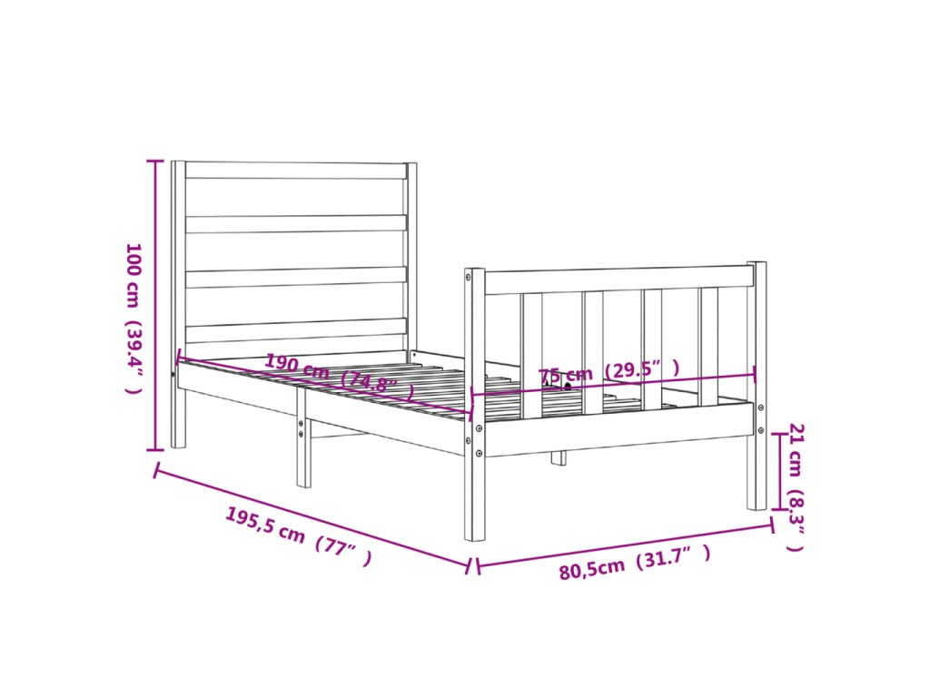 - Celkové rozměry postele: 195,5 x 80,5 x 100 cm (D x Š x V)