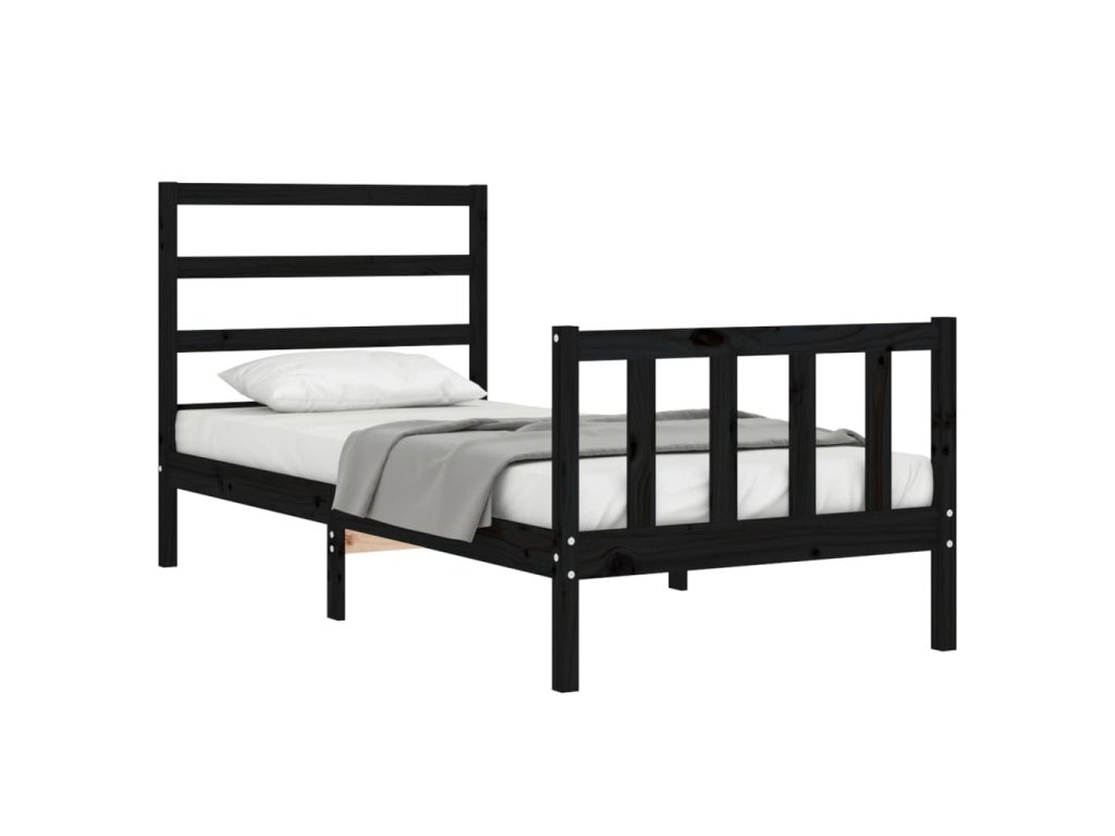 Rám postele s čelem černý Small Single masivní dřevo 3191870
