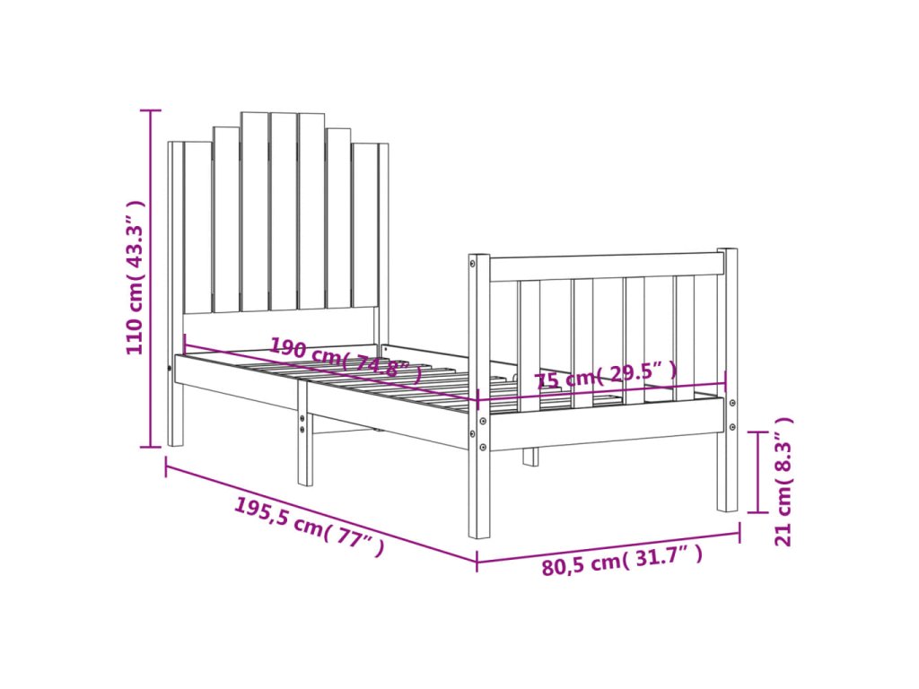- Celkové rozměry postele: 195,5 x 80,5 x 110 cm (D x Š x V)