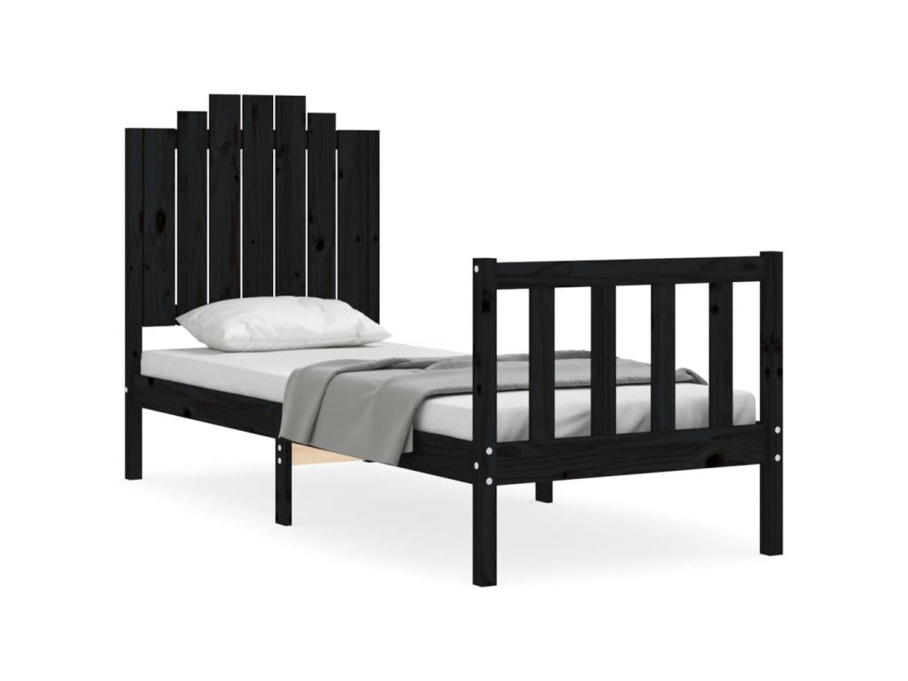 Rám postele s čelem černý Small Single masivní dřevo 3192260