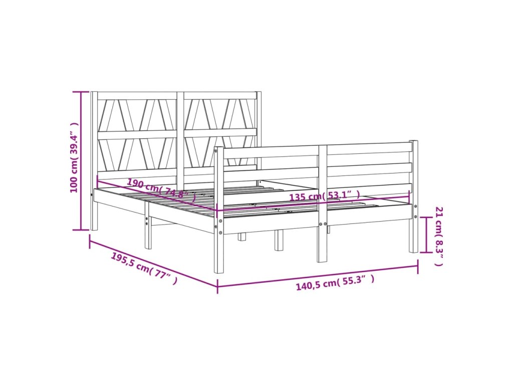 - Celkové rozměry postele: 195,5 x 140,5 x 100 cm (D x Š x V)