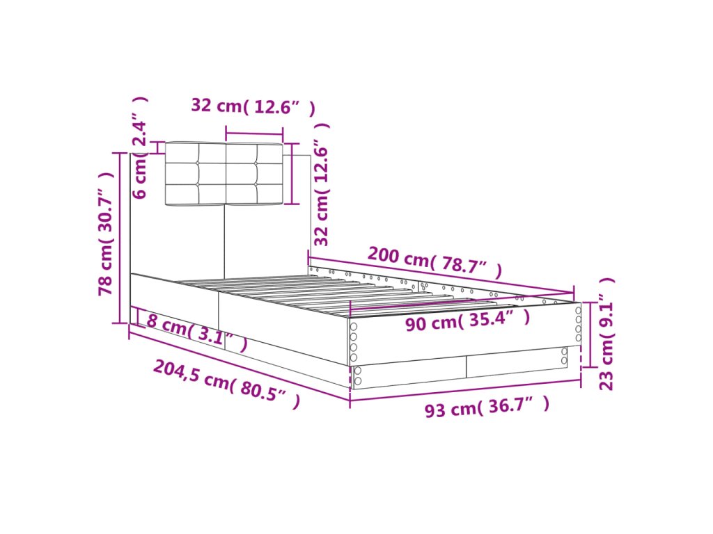 Rám postele s čelem dub sonoma 90 x 200 cm kompozitní dřevo 3209942