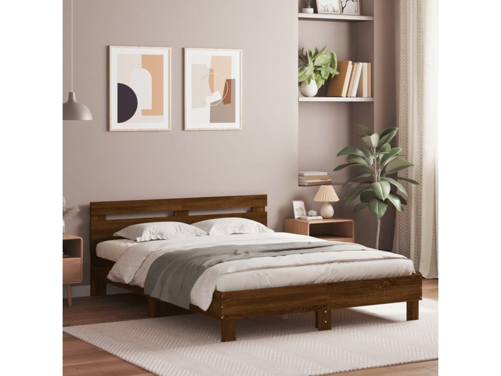Rám postele s čelem hnědý dub 150 x 200 cm kompozitní dřevo 3207419