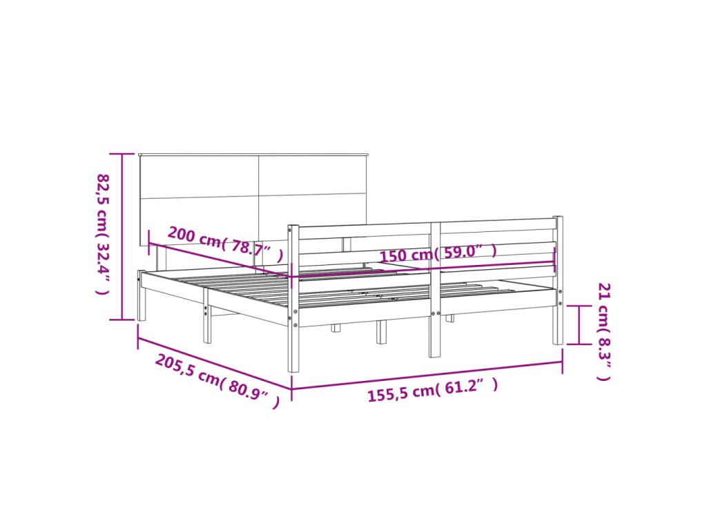 - Celkové rozměry postele: 205,5 x 155,5 x 82,5 cm (D x Š x V)