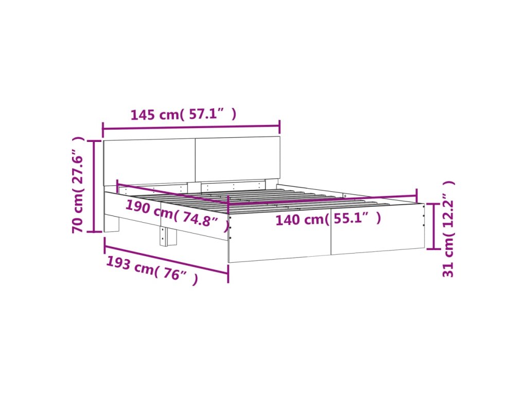 Rám postele s čelem kouřový dub 140 x 190 cm 3207501