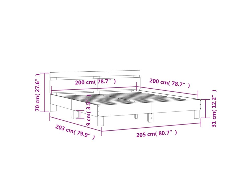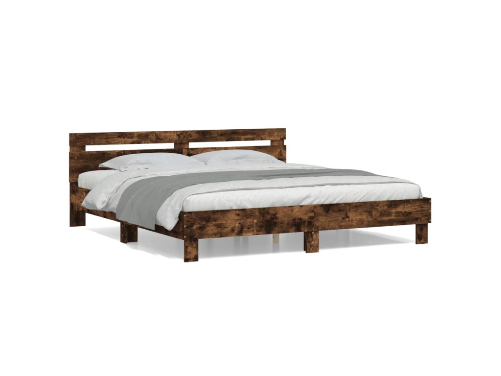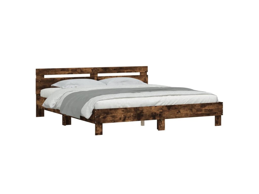 Rám postele s čelem kouřový dub 200 x 200 cm kompozitní dřevo 3207396