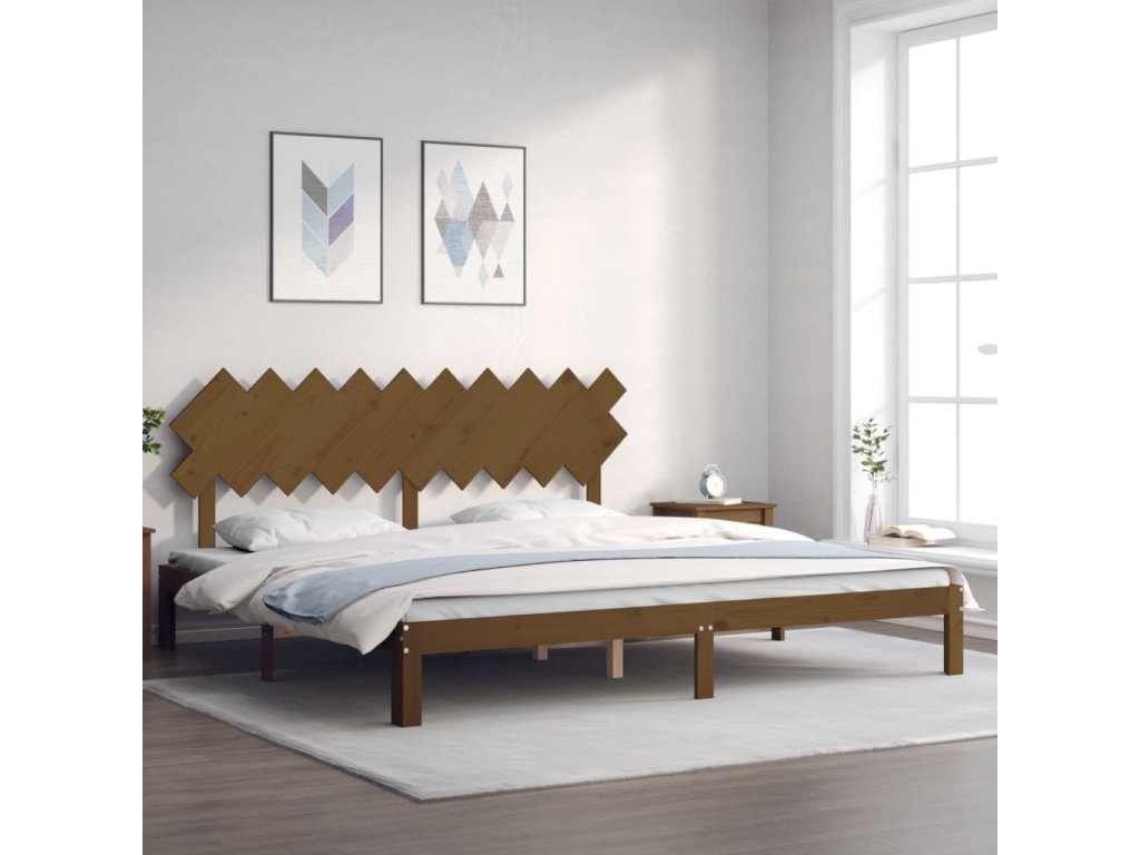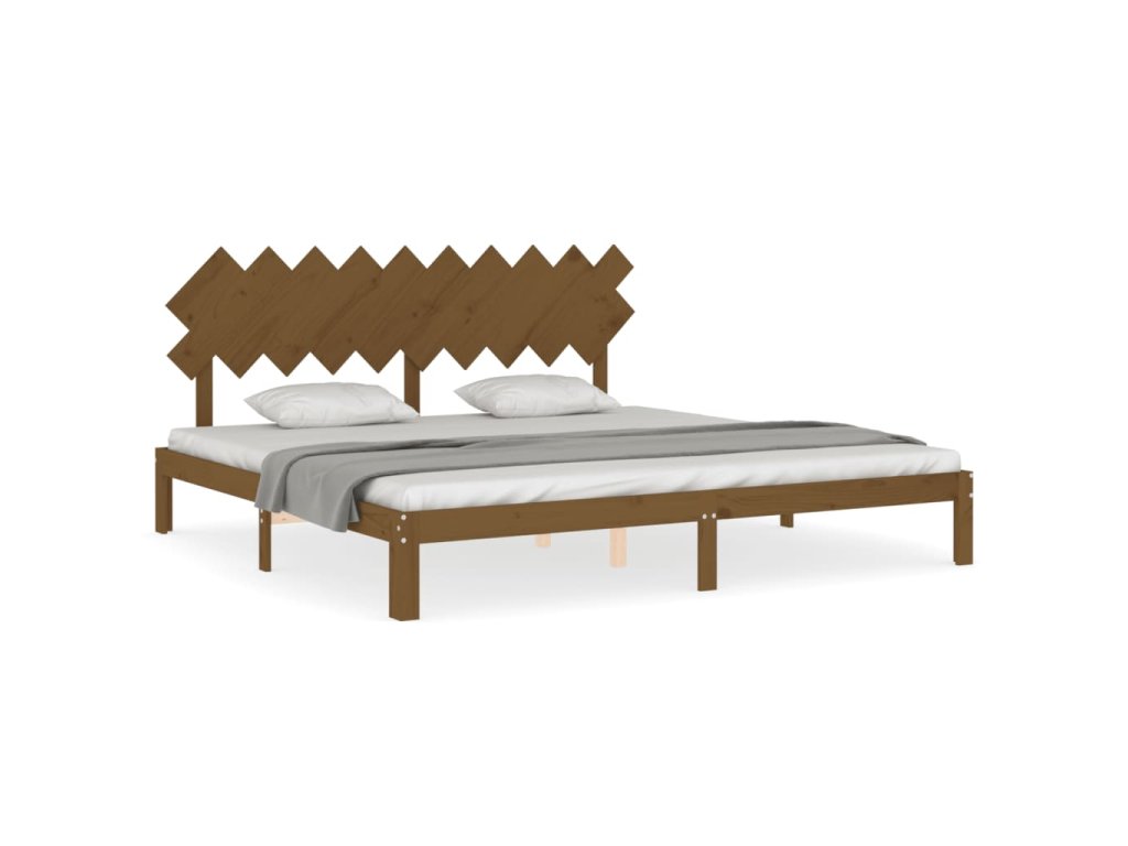 Rám postele s čelem medově hnědý 200 x 200 cm masivní dřevo 3193749