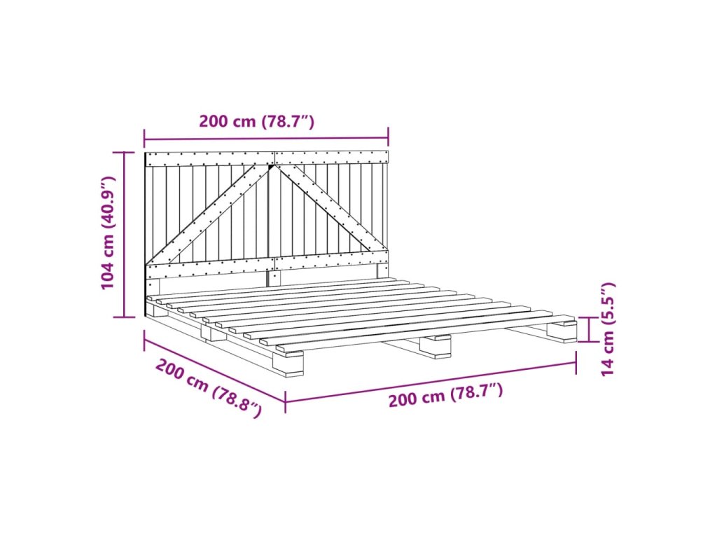 Rám postele s čelem šedý 200 x 200 cm masivní borové dřevo 3281567
