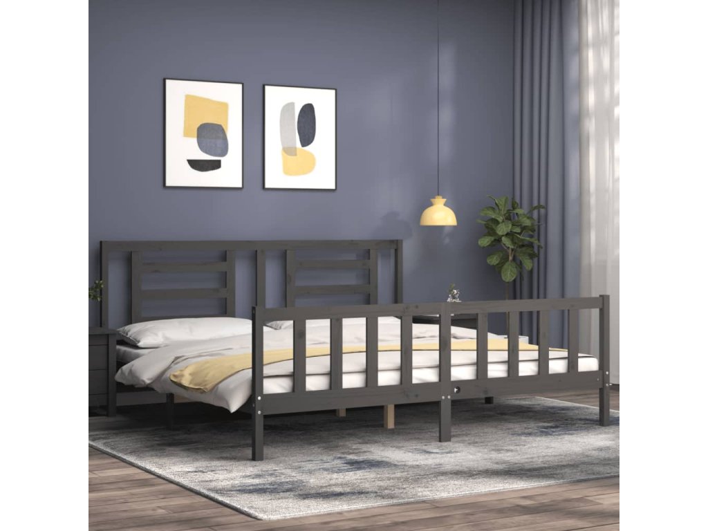 Rám postele s čelem šedý 200 x 200 cm masivní dřevo 3192903