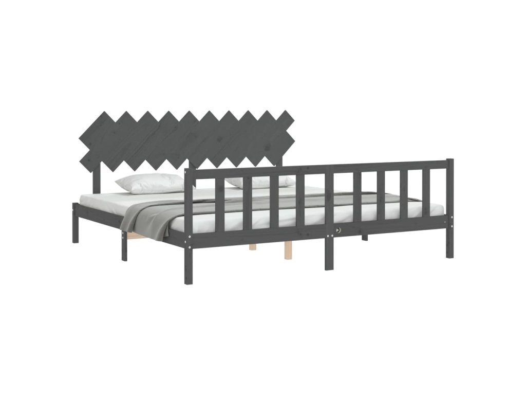 Rám postele s čelem šedý 200 x 200 cm masivní dřevo 3193488