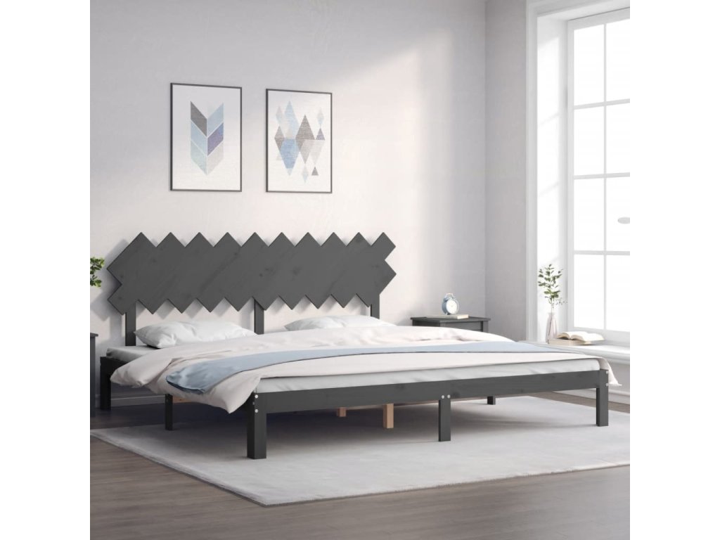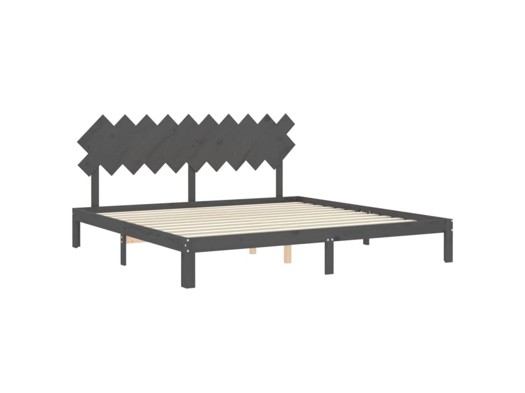 Rám postele s čelem šedý 200 x 200 cm masivní dřevo 3193748