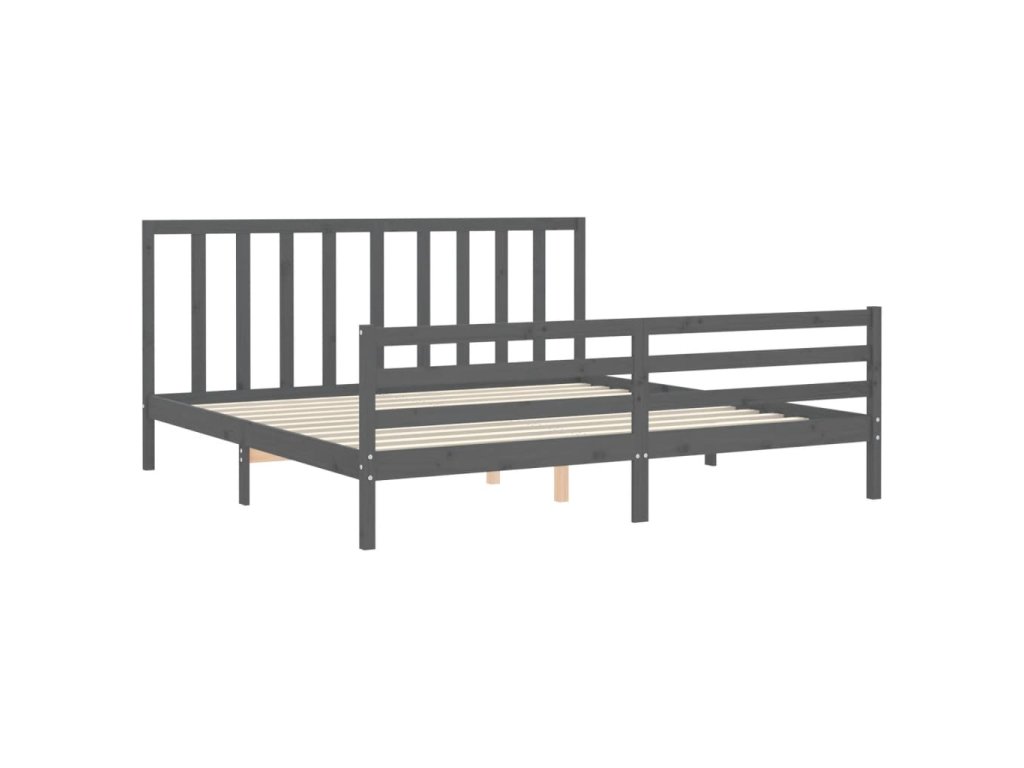Rám postele s čelem šedý 200 x 200 cm masivní dřevo 3193813