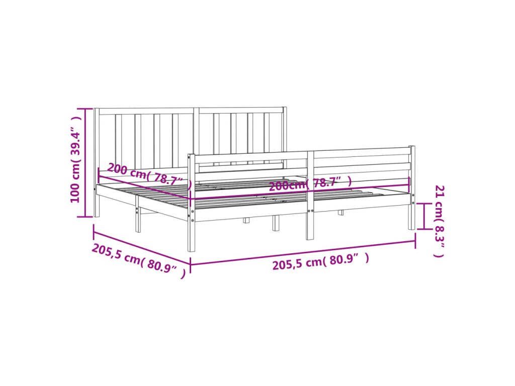 - Celkové rozměry postele: 205,5 x 205,5 x 100 cm (D x Š x V)