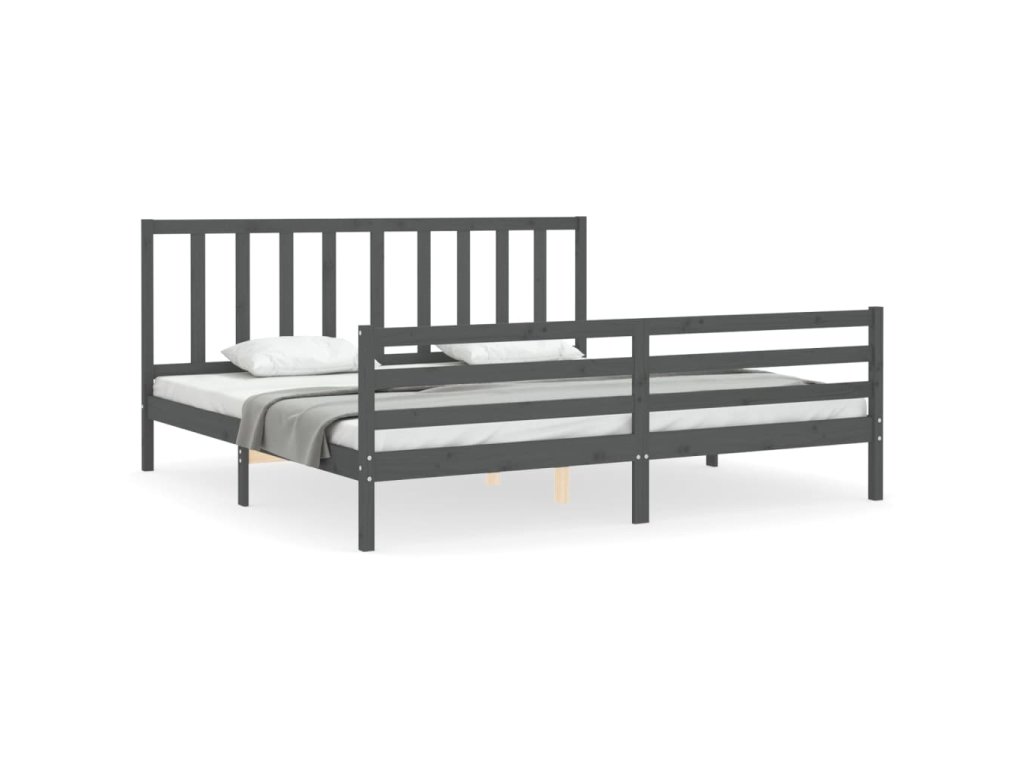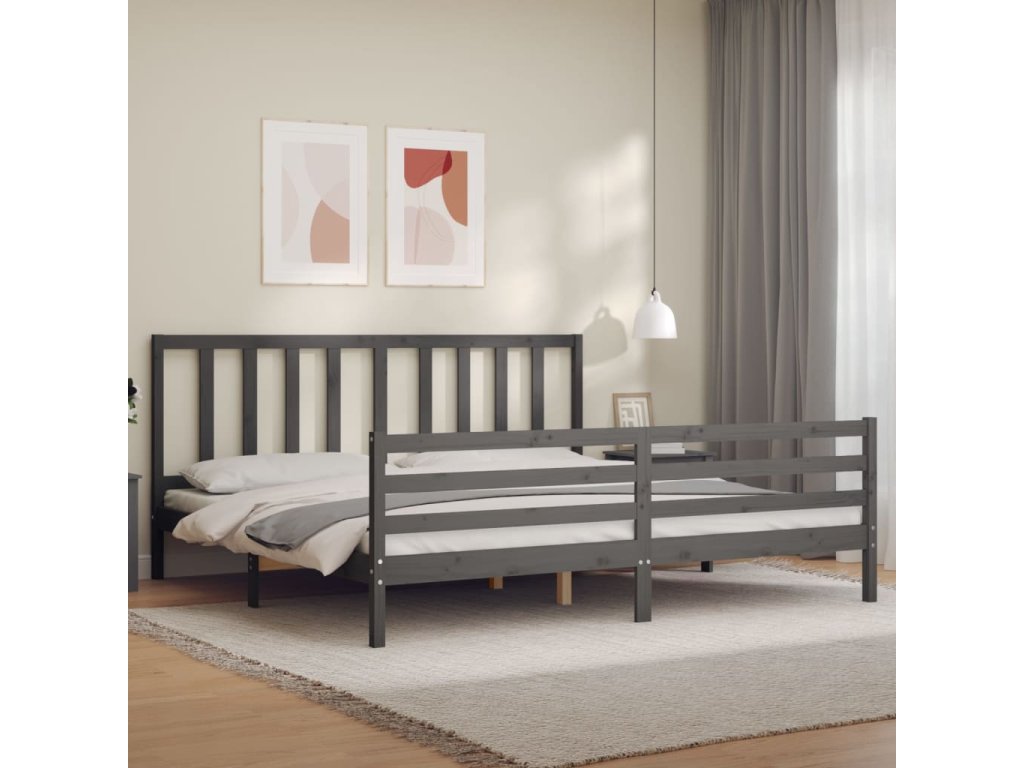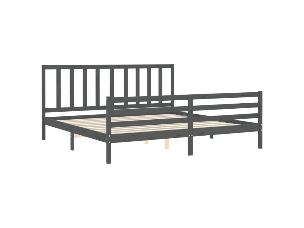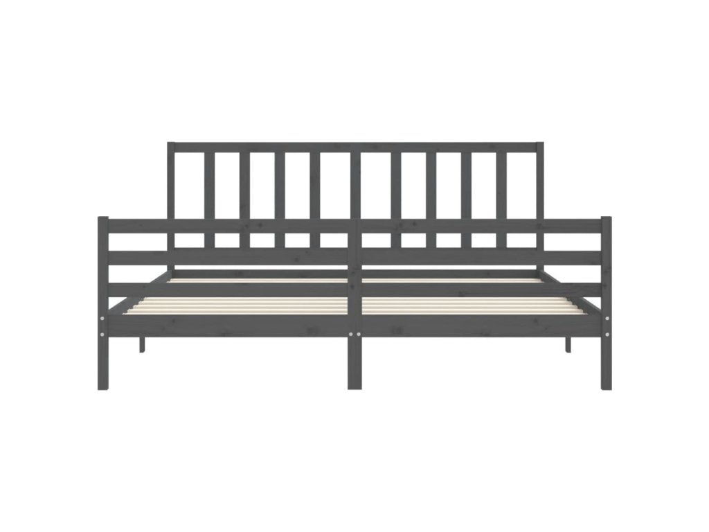 Rám postele s čelem šedý 200 x 200 cm masivní dřevo 3193878