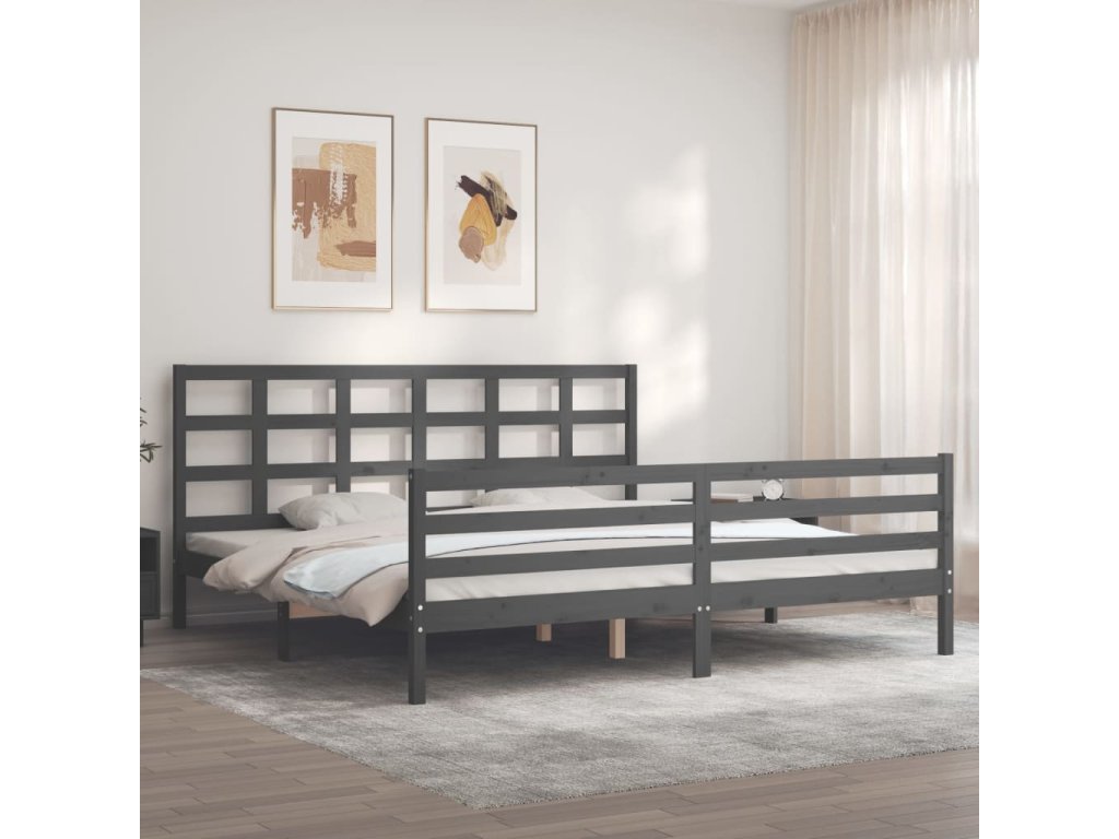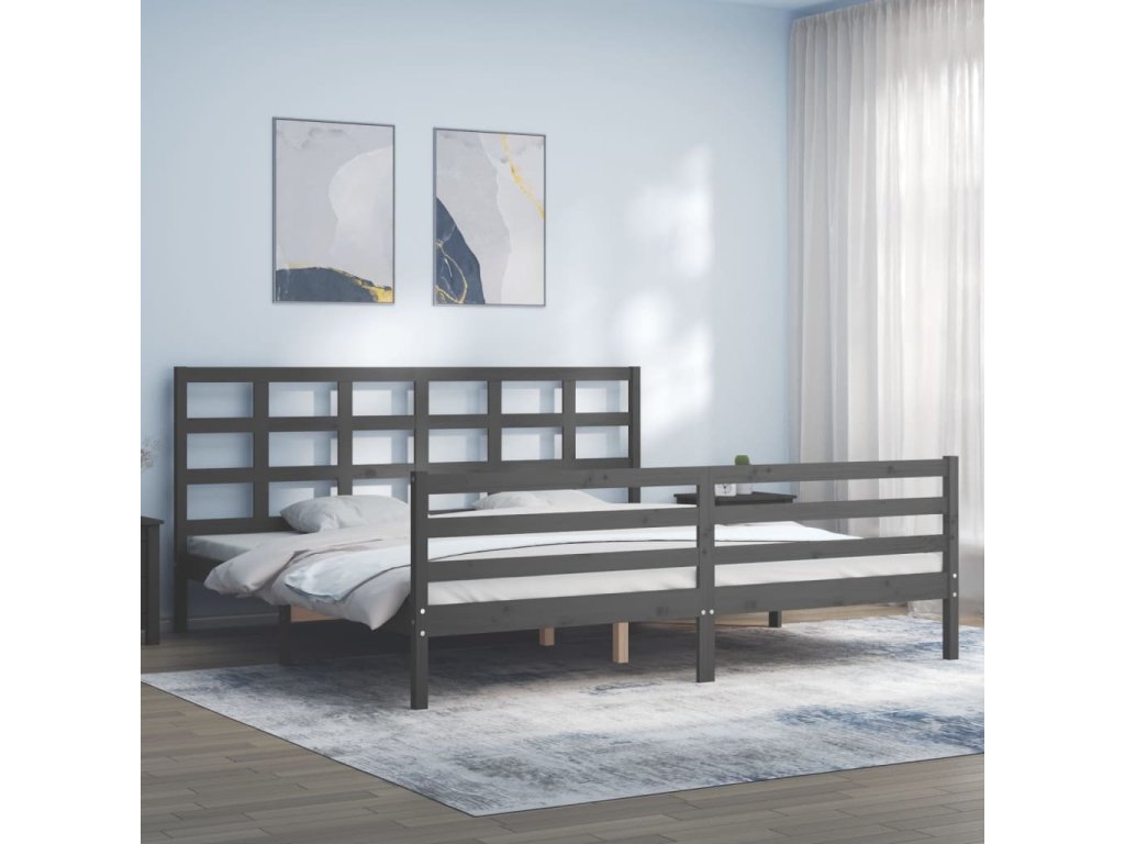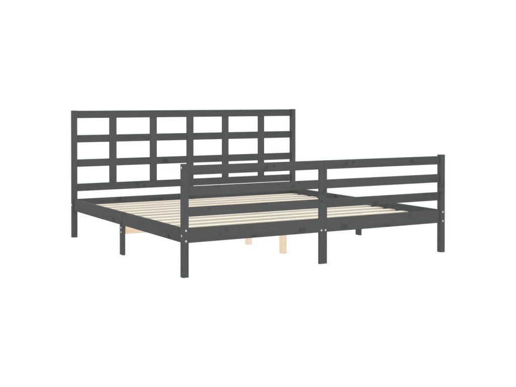 Rám postele s čelem šedý 200 x 200 cm masivní dřevo 3194008