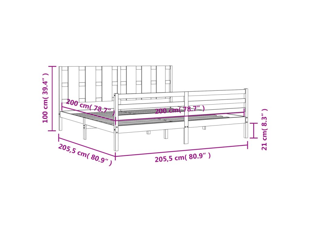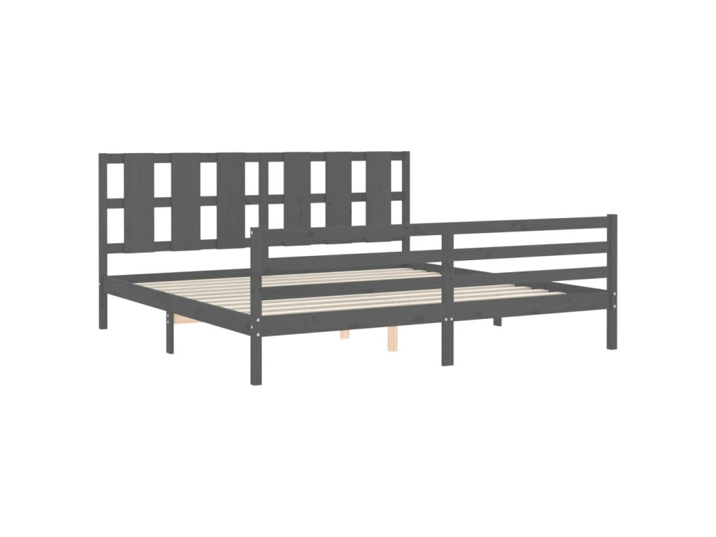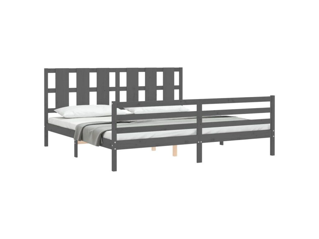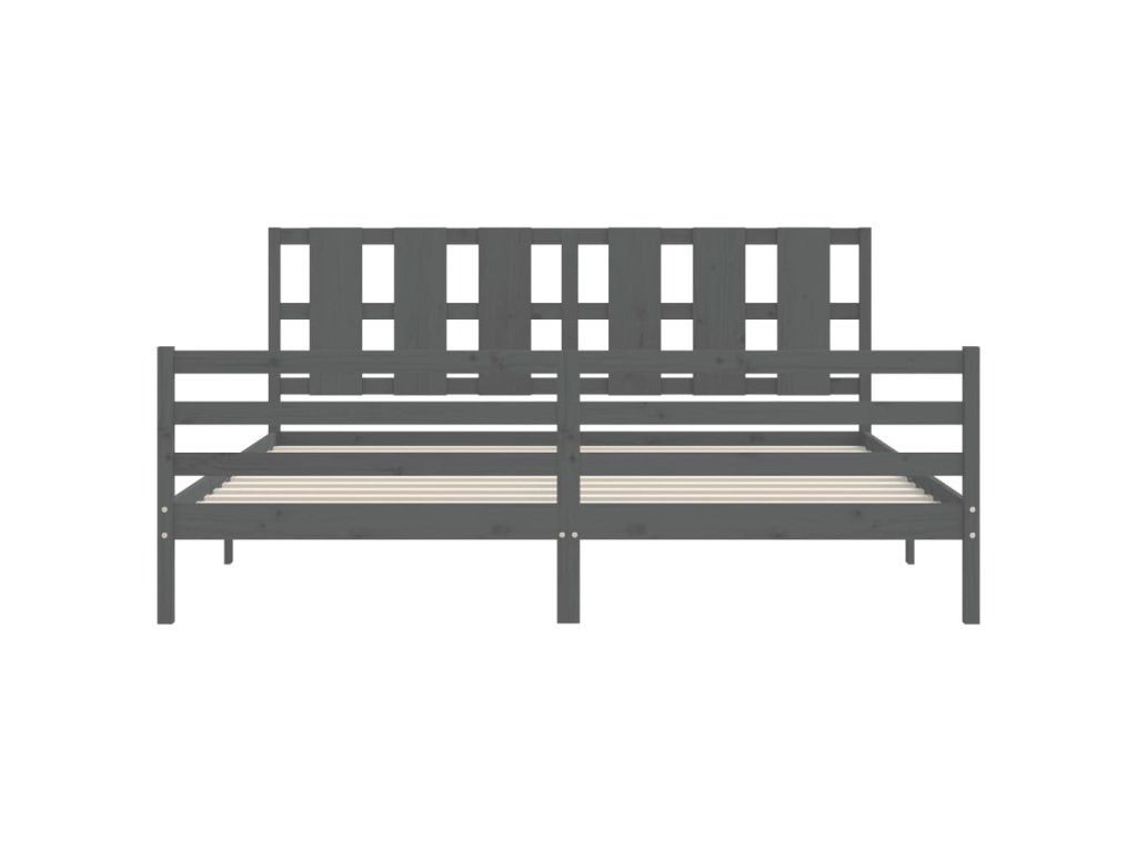 Rám postele s čelem šedý 200 x 200 cm masivní dřevo 3194138