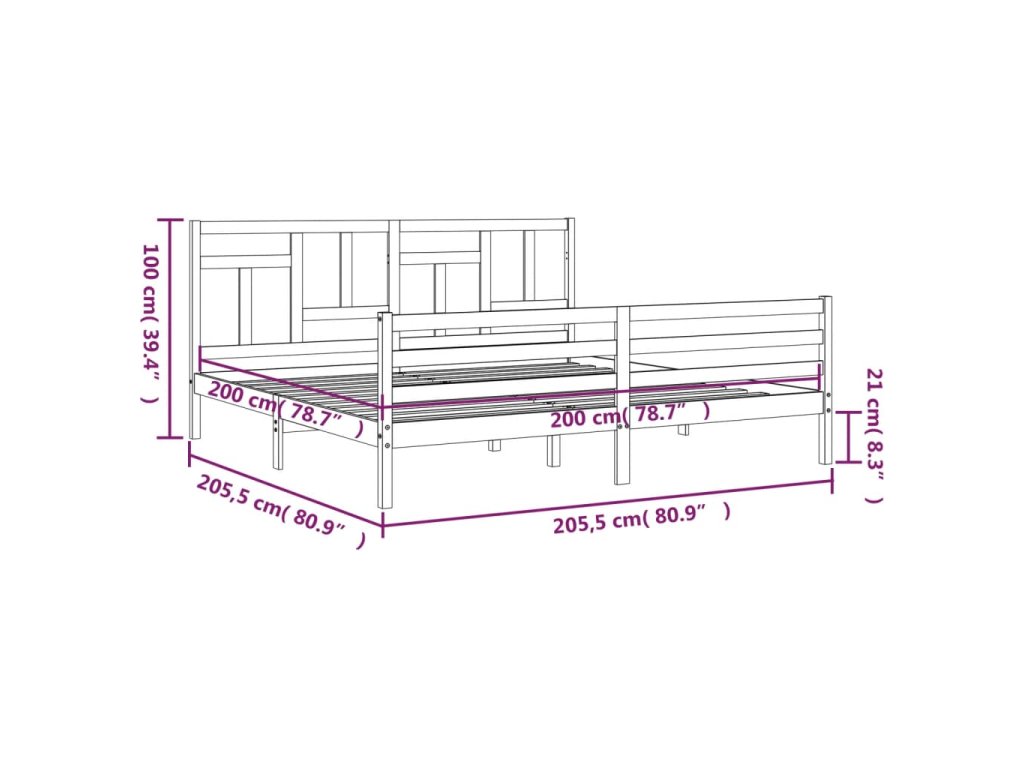 - Celkové rozměry postele: 205,5 x 205,5 x 100 cm (D x Š x V)