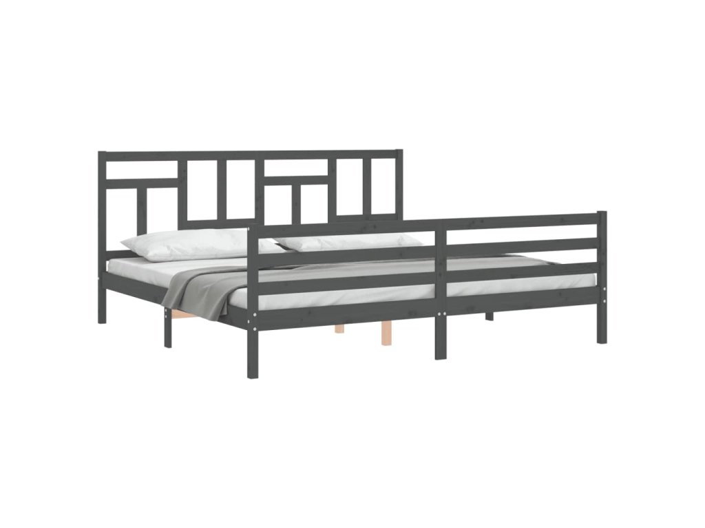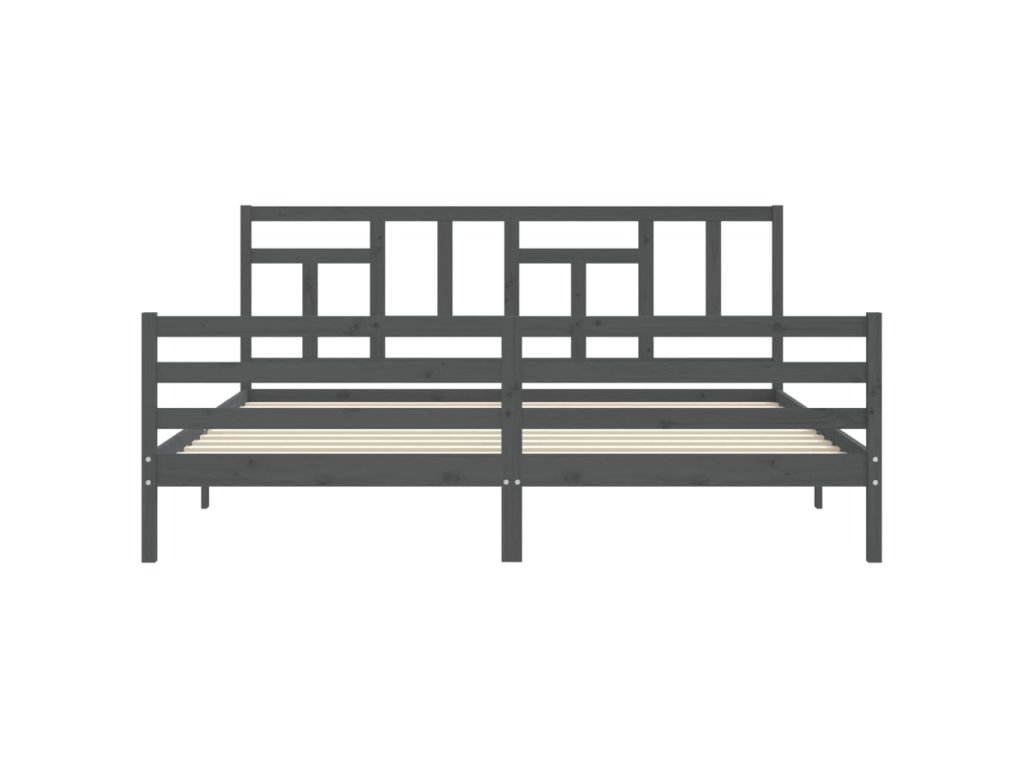 Rám postele s čelem šedý 200 x 200 cm masivní dřevo 3194983