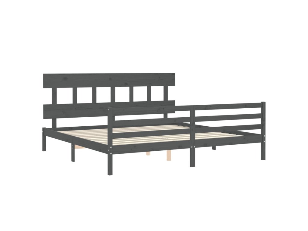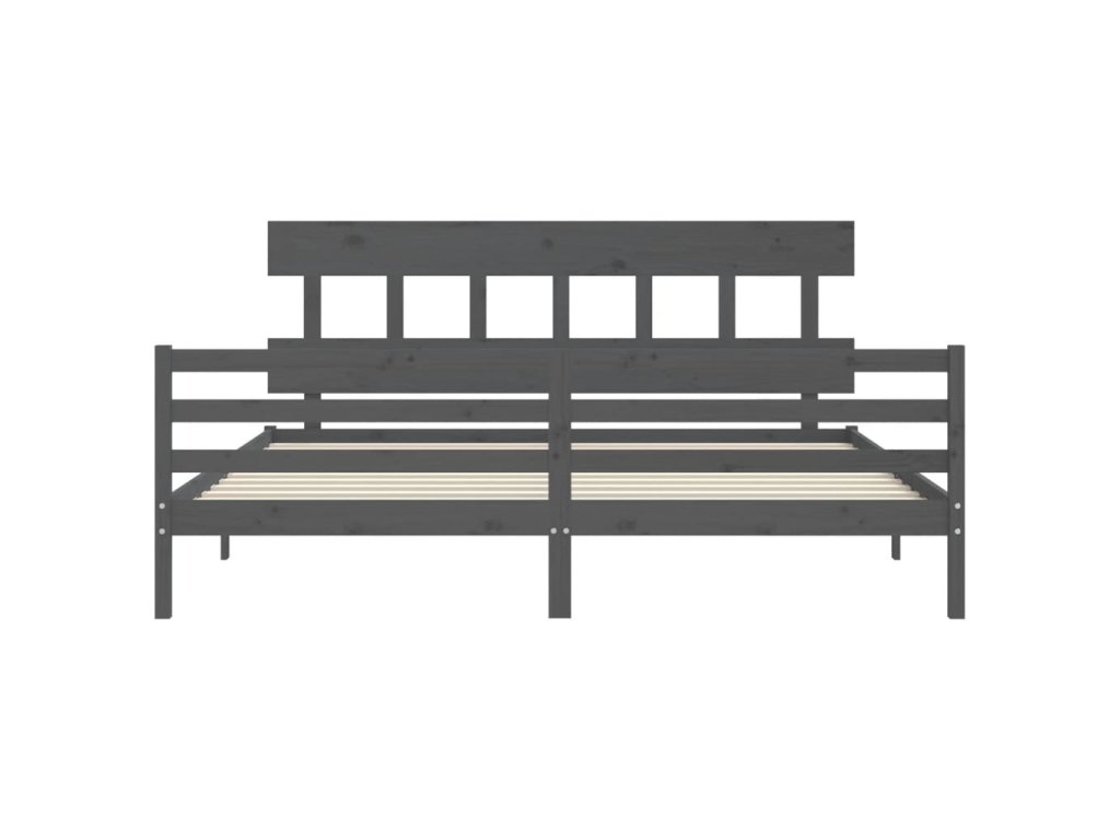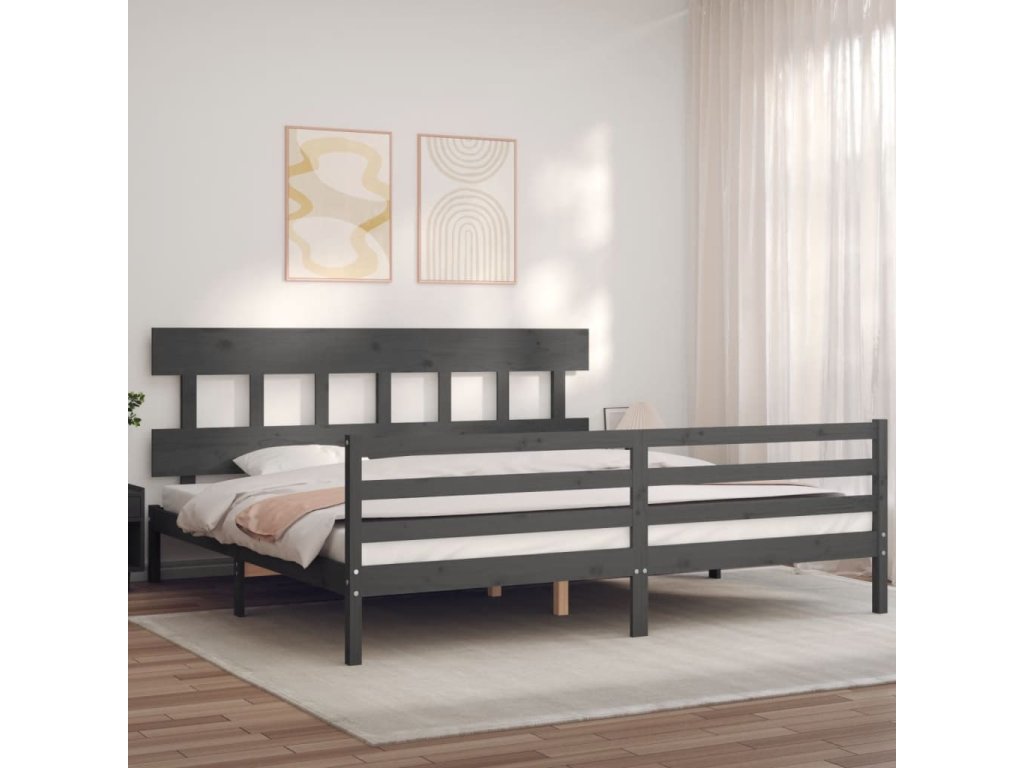 Rám postele s čelem šedý 200 x 200 cm masivní dřevo 3195178