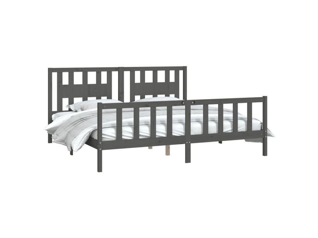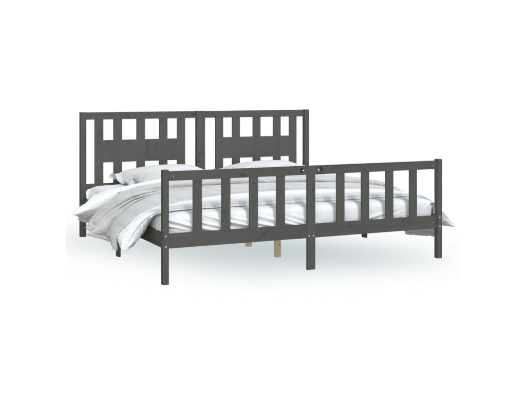 Rám postele s čelem šedý masivní borové dřevo 200 x 200 cm 3188188