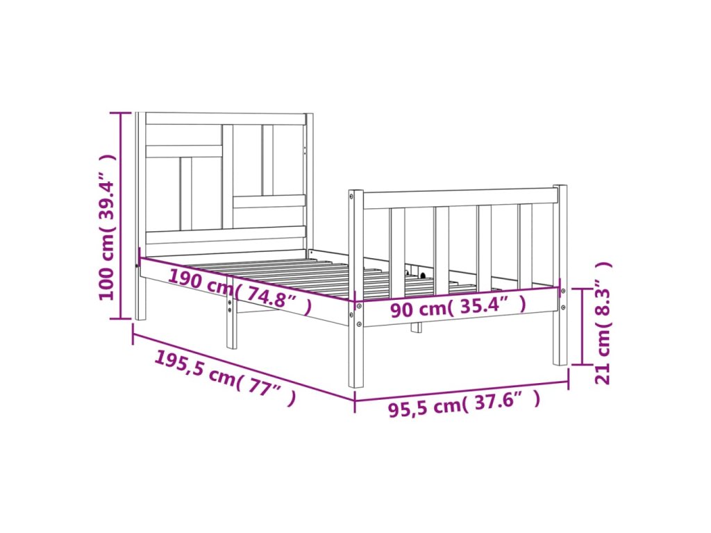 - Celkové rozměry postele: 195,5 x 95,5 x 100 cm (D x Š x V)