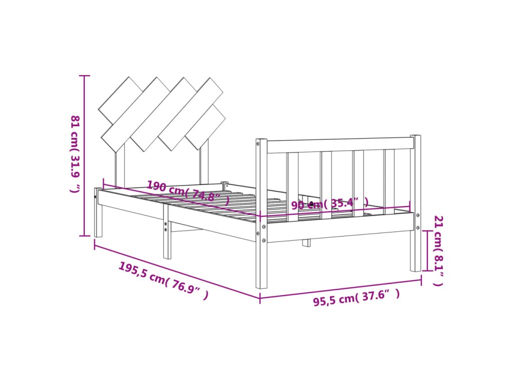 - Celkové rozměry postele: 195,5 x 95,5 x 81 cm (D x Š x V)