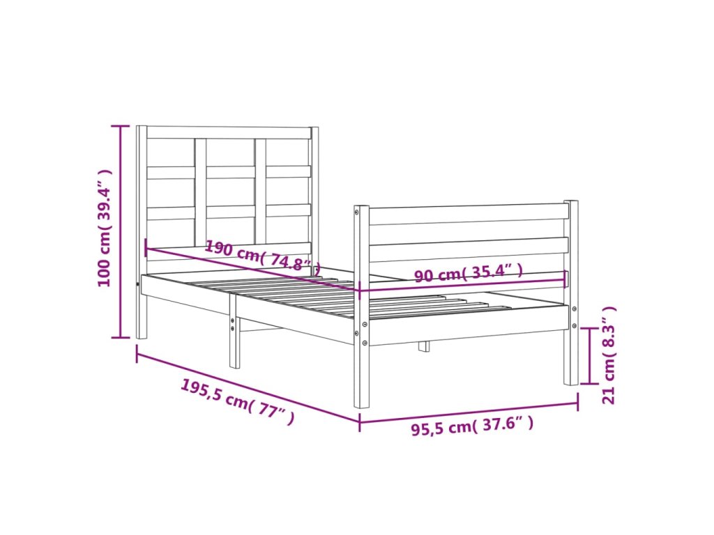 - Celkové rozměry postele: 195,5 x 95,5 x 100 cm (D x Š x V)