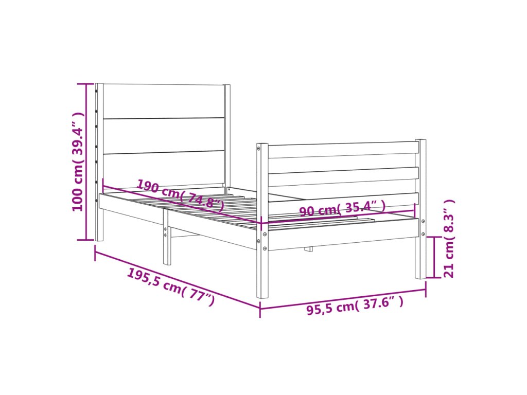 - Celkové rozměry postele: 195,5 x 95,5 x 100 cm (D x Š x V)