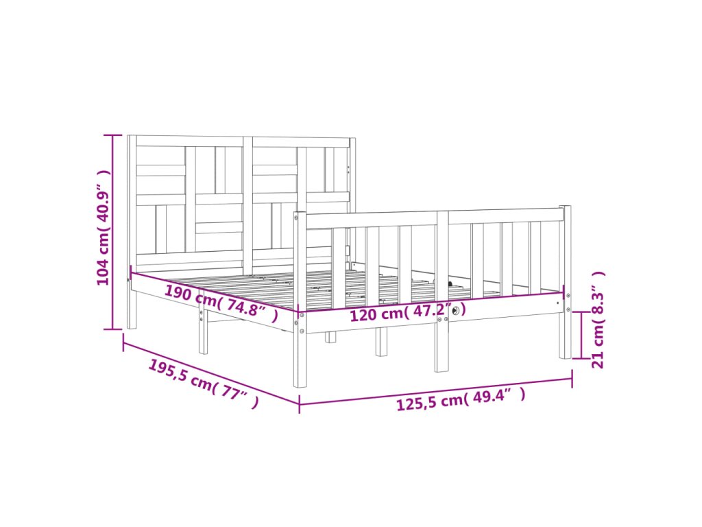 - Celkové rozměry postele: 195,5 x 125,5 x 104 cm (D x Š x V)