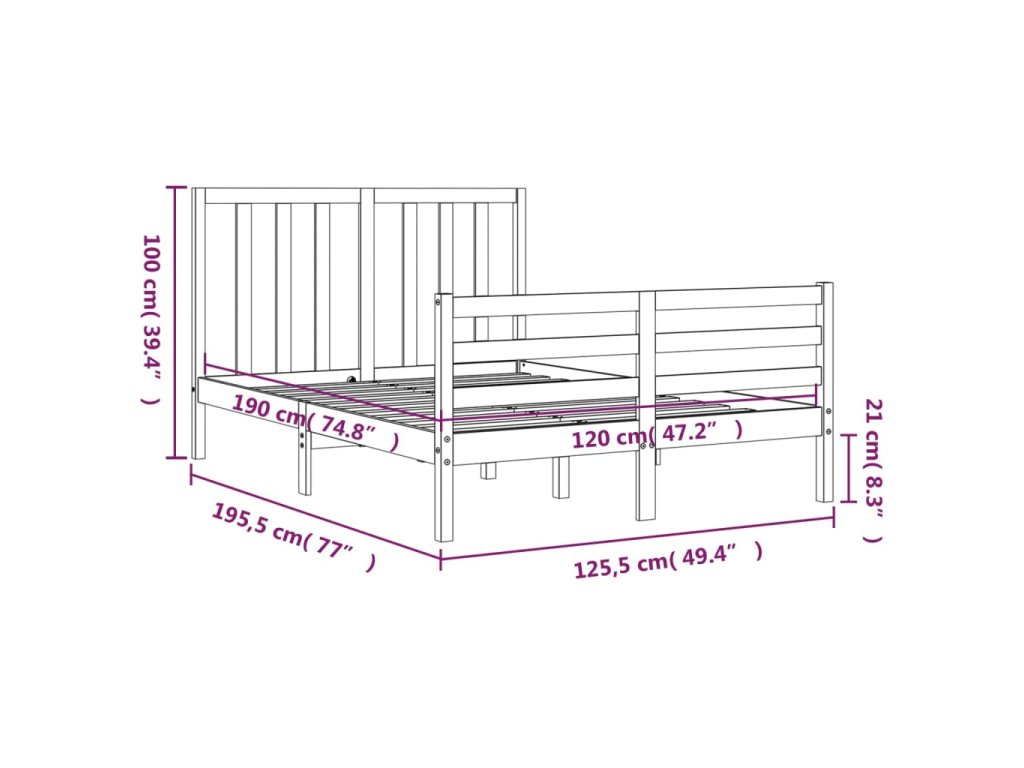 - Vhodné rozměry matrace (matrace není součástí balení): 120 x 190 cm (Š x D) (4FT Small Double)