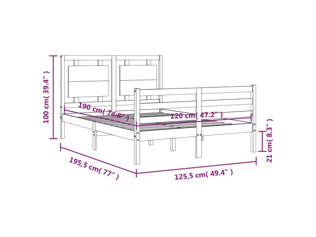 - Vhodné rozměry matrace (matrace není součástí balení): 120 x 190 cm (Š x D) (4FT Small Double)