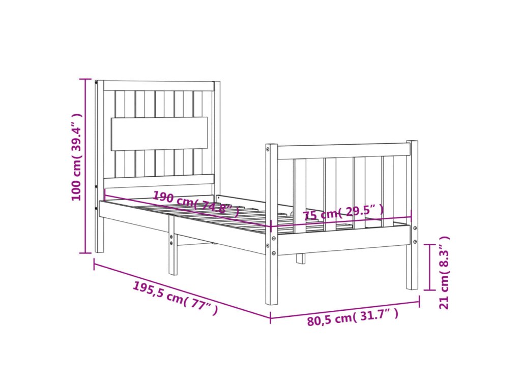 - Celkové rozměry postele: 195,5 x 80,5 x 100 cm (D x Š x V)
