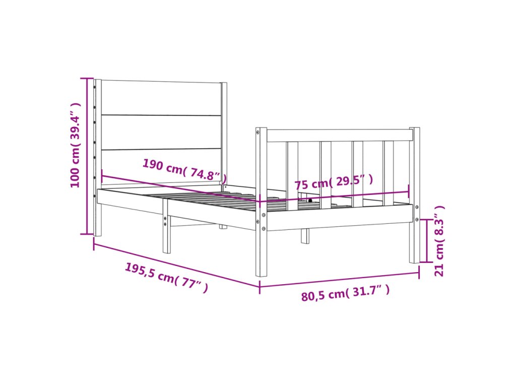 - Celkové rozměry postele: 195,5 x 80,5 x 100 cm (D x Š x V)