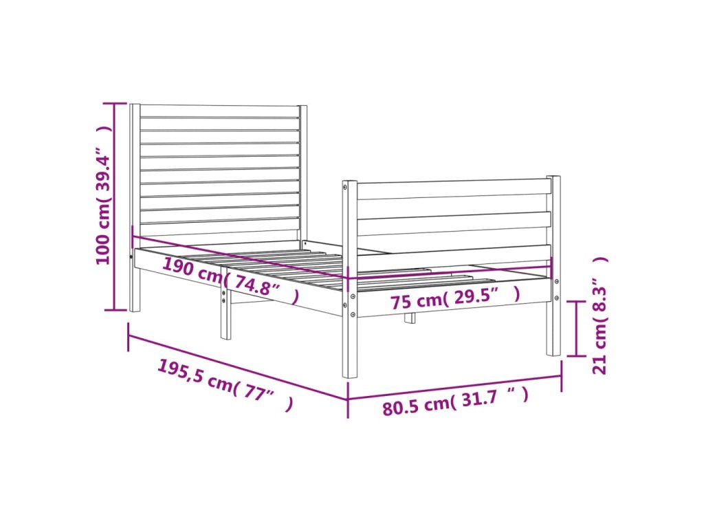 - Celkové rozměry postele: 195,5 x 80,5 x 100 cm (D x Š x V)