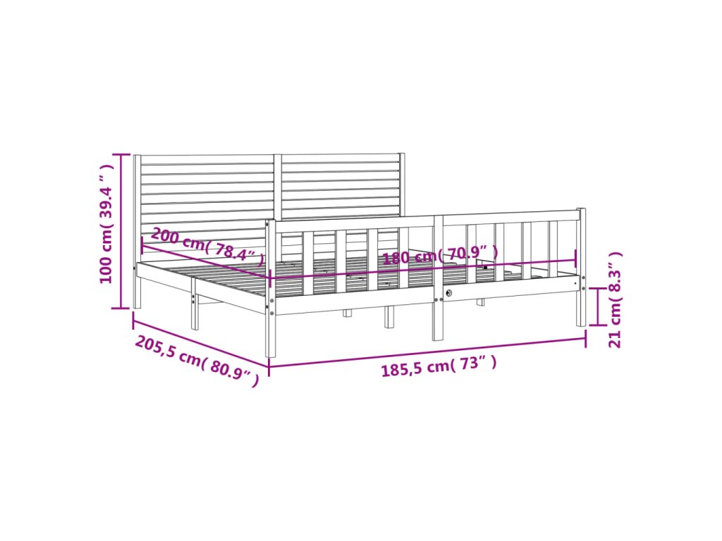 Rám postele s čelem Super King Size masivní dřevo 3193221