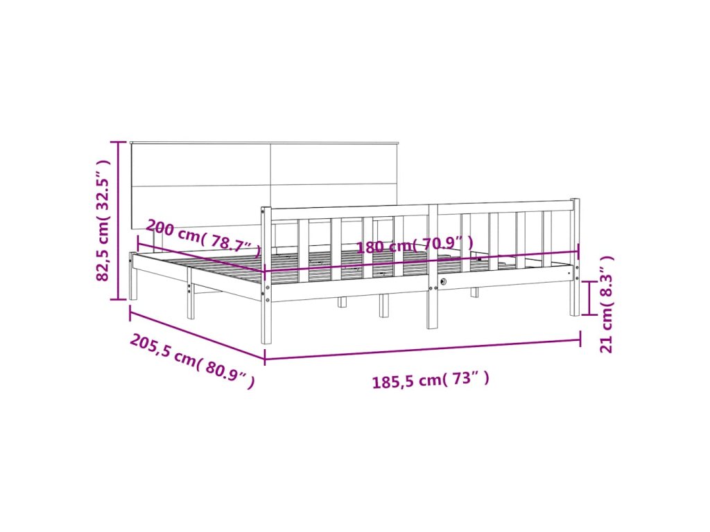 Rám postele s čelem Super King Size masivní dřevo 3193416