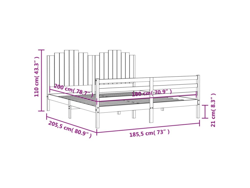 Rám postele s čelem Super King Size masivní dřevo 3194196