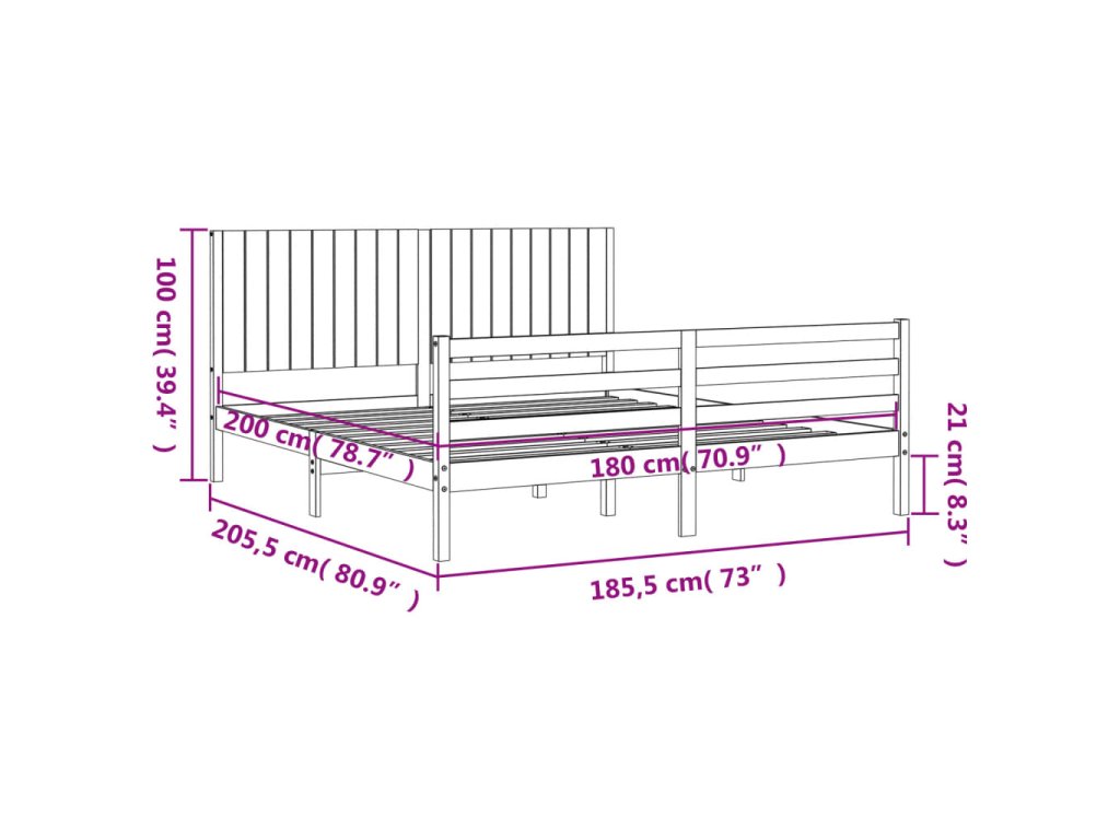 Rám postele s čelem Super King Size masivní dřevo 3194781