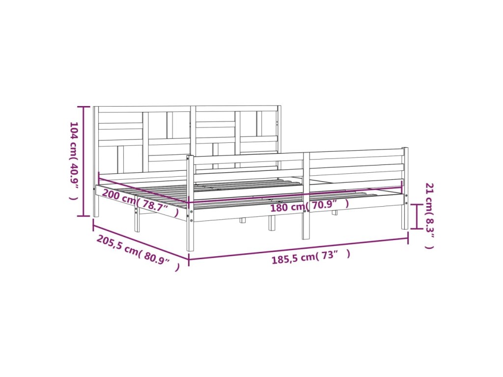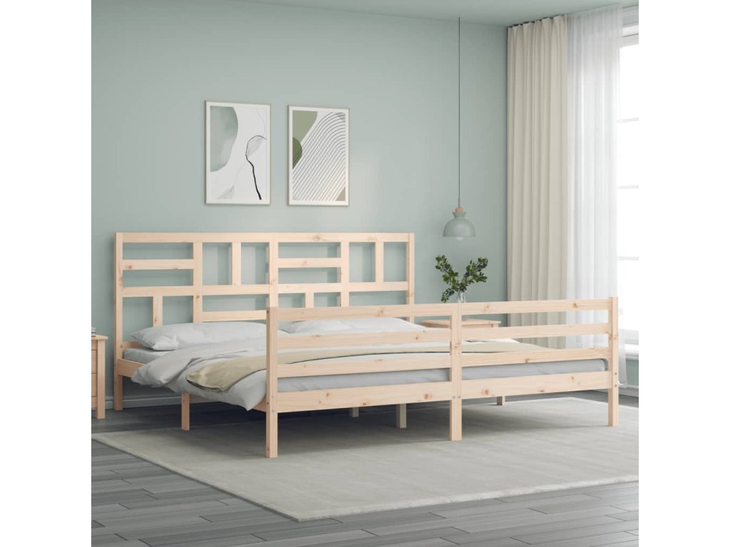 Rám postele s čelem Super King Size masivní dřevo 3194911