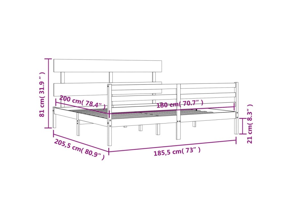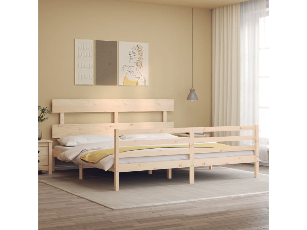 Rám postele s čelem Super King Size masivní dřevo 3195106
