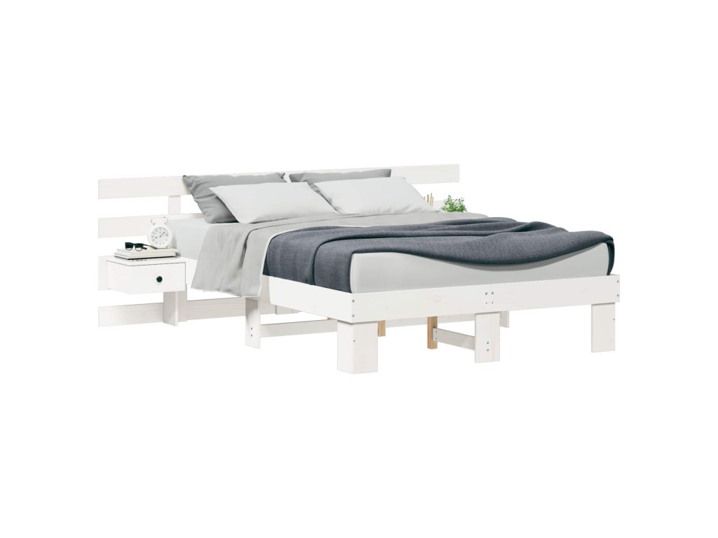 Rám postele s čelo Bílá 120 x 200 cm Masivní borové dřevo 3385692