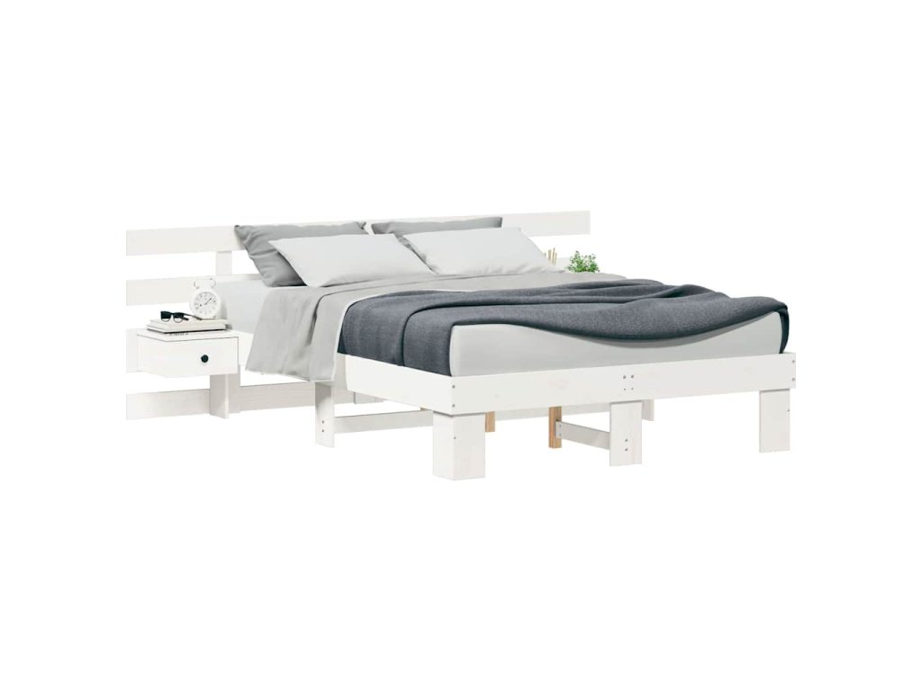 Rám postele s čelo Bílá 140 x 190 cm Masivní borové dřevo 3385695