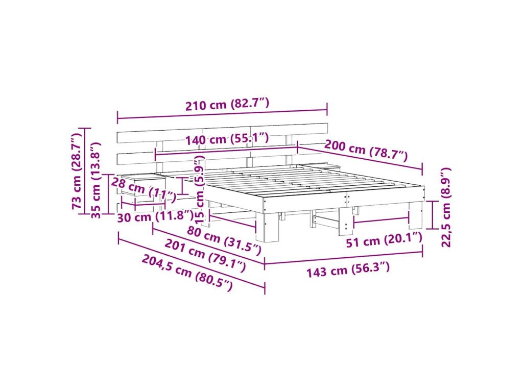 - Velikost matrace: Dvojpostel (140 cm x 200 cm nebo 55" x 79")