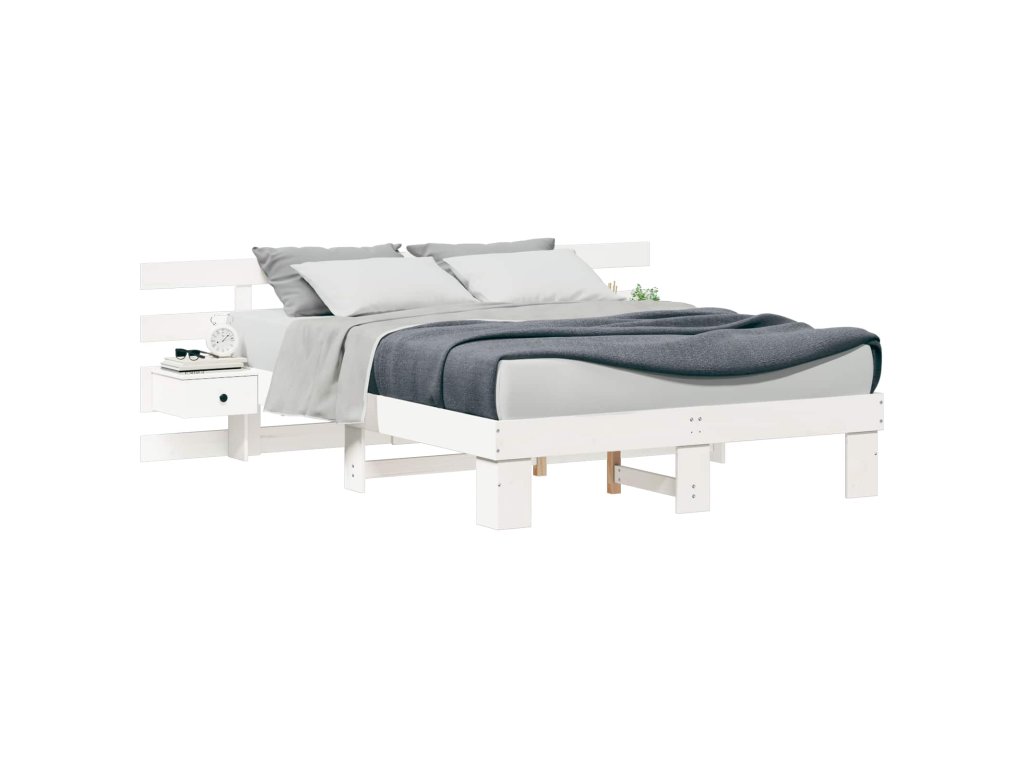 Rám postele s čelo Bílá 140 x 200 cm Masivní borové dřevo 3385689